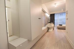 El alojamiento dispone de un dormitorio equipado con almohadas sintéticas sin plumón, ropa de cama, toallas, calefacción y suelo alfombrado. También cuenta con lavadora. Los huéspedes pueden preparar sus comidas en la cocina americana totalmente equipada que incluye placa vitrocerámica, frigorífico, lavavajillas y hervidor eléctrico. El apartamento ofrece además zona comedor y televisor pantalla plana con enchufes junto a la cama.